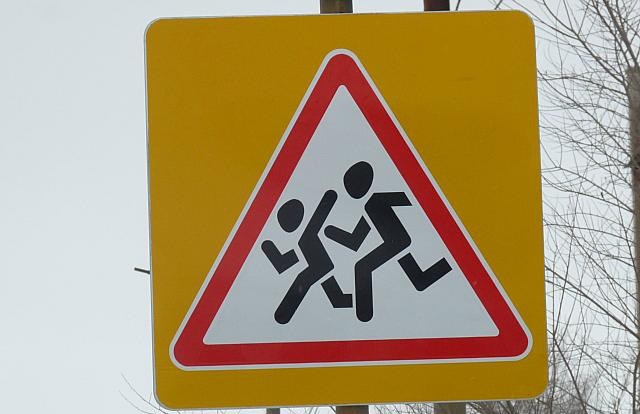Дорожный знак 1.23 "Дети" с желто-зеленой флуоресцентной полосой Уссурийске