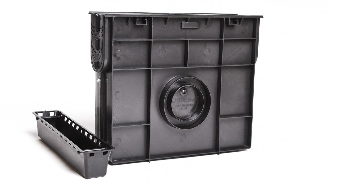 Универсальный пластиковый пескоуловитель предназначен для комплектации систем водоотводных пластиковых лотков с шириной гидравлического сечения DN100 (100 мм). Предотвращает попадание посторонних предметов в колодец или канализацию – защита ливневой канализации от засорения. Пескоуловитель пластиковый может использоваться в качестве развязки при построении поверхностного водоотвода (соединитель отводящих труб и каналов). В конструкции предусмотрены специальные горизонтальные патрубки для соединения с трубой 110-ого и 160-ого диаметра. -