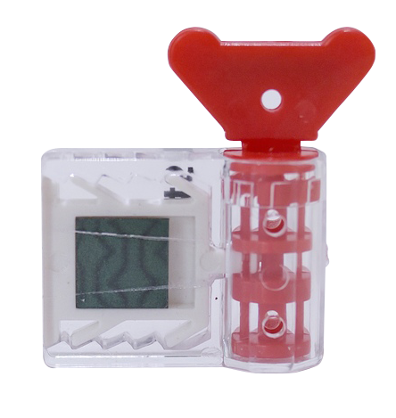 Материал пломбы: прочный поликарбонат, вставка из акрила. Состав пломбы: основная часть корпуса, роторная вставка и защелка антимагнитным элементом. Свойства: Антимагнитный элемент представляет собой поле зеленого цвета с нанесенным магнитным рисунком в виде геометрических фигур. При воздействии магнитным полем на объект контроля и в зависимости от величины напряженности магнитного поля рисунок либо изменяет свою первоначальную структуру, либо исчезает совсем. При этом индикатор необратимо меняет свой цвет на темный, указывая на факт воздействия магнитным полем на объект