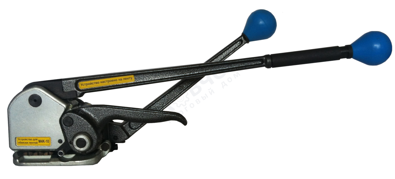 Все элементы устройства изготовлены из особопрочных современных материалов, за счёт этого уменьшился его вес и повысилась надёжность. На настоящий момент инструмент М4К-10 для обвязки грузов металлической (стальной) лентой самый лучший по соотношению цена+качество в этом сегменте.